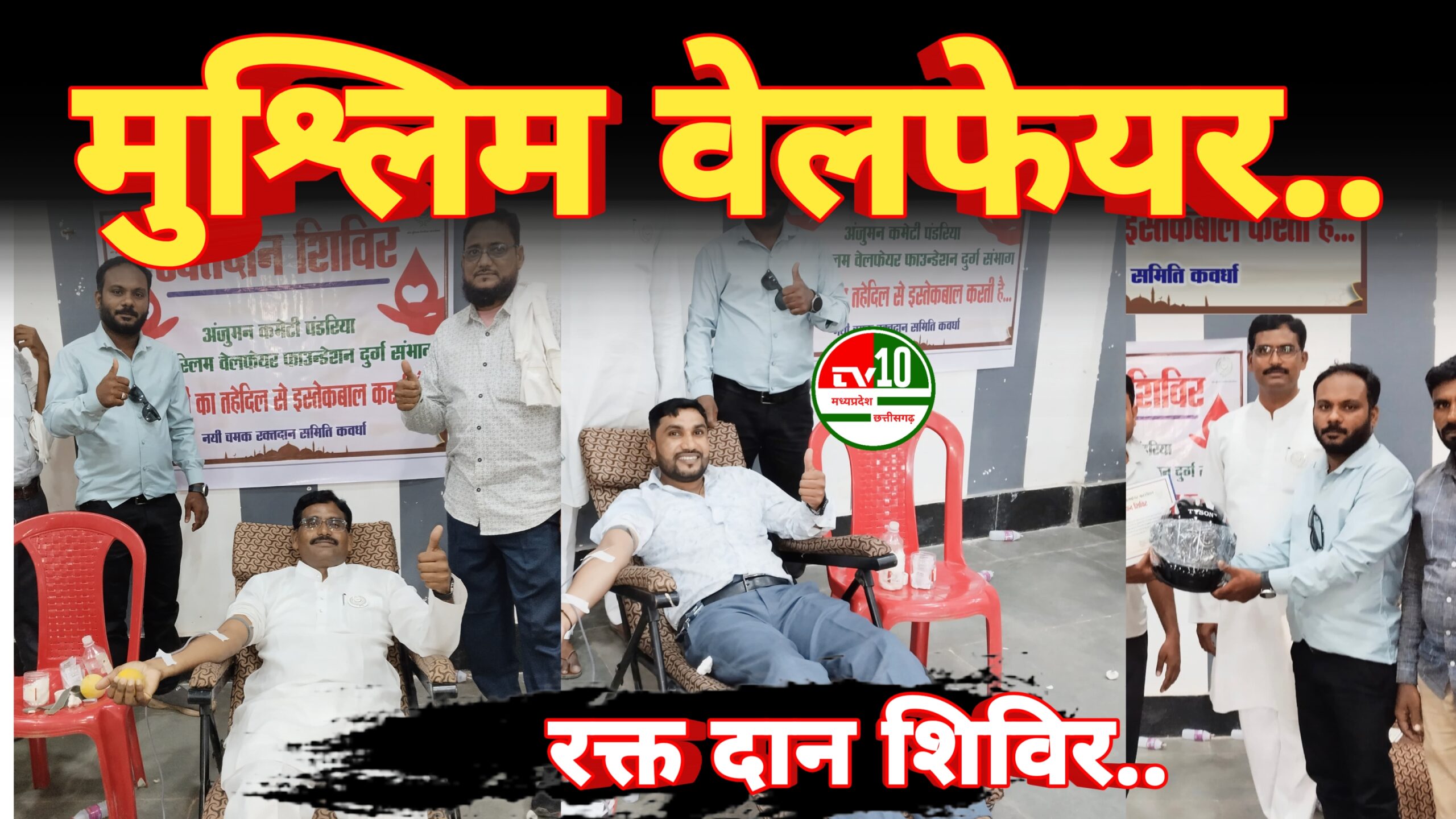 पंडरिया:- पंडरिया समुदायिक भवन मे अंजुमन कमेटी पंडरिया ऑल मुश्लिम वेलफेयर फाउंडेशन दुर्ग संभाग के तत्वधान मे ने रक्तदान शिविर का आयोजन किया गया इस शिविर मे कुल 17 यूनिट रक्तदान हुवा
