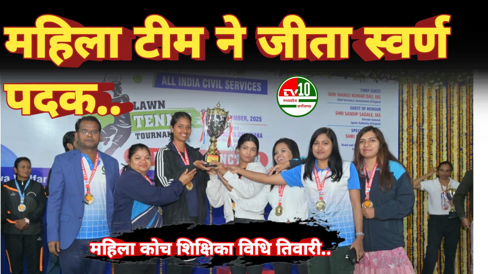 कवर्धा:- छत्तीसगढ़ राज्य के लिए यह अत्यंत गौरव का विषय है कि ऑल इंडिया सिविल सर्विसेज लॉन टेनिस प्रतियोगिता में महिला कोच के रूप में शिक्षिका विधि तिवारी के कुशल नेतृत्व में छत्तीसगढ़ महिला टीम ने उत्कृष्ट प्रदर्शन करते हुए प्रथम स्थान प्राप्त कर स्वर्ण पदक अपने नाम किया।
