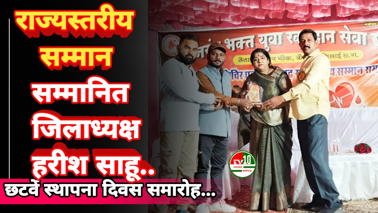 भिलाई, 24 मार्च:-  भिलाई के बजरंग भक्त रक्तदान सेवा समिति द्वारा आयोजित छटवें स्थापना दिवस समारोह में राज्यस्तरीय सम्मान वितरण का आयोजन किया गया। इस समारोह में कवर्धा जिले से नयी चमक रक्तदान एवं जनकल्याण समिति के जिलाध्यक्ष हरीश साहू और उनकी समिति को विशेष सम्मान प्रदान किया गया। इस समारोह का आयोजन भिलाई के कैम्प 1 स्थित BSP स्कूल में किया गया, जिसमें प्रदेशभर के विभिन्न जिलों से समाजसेवियों और संस्थाओं को सम्मानित किया गया।