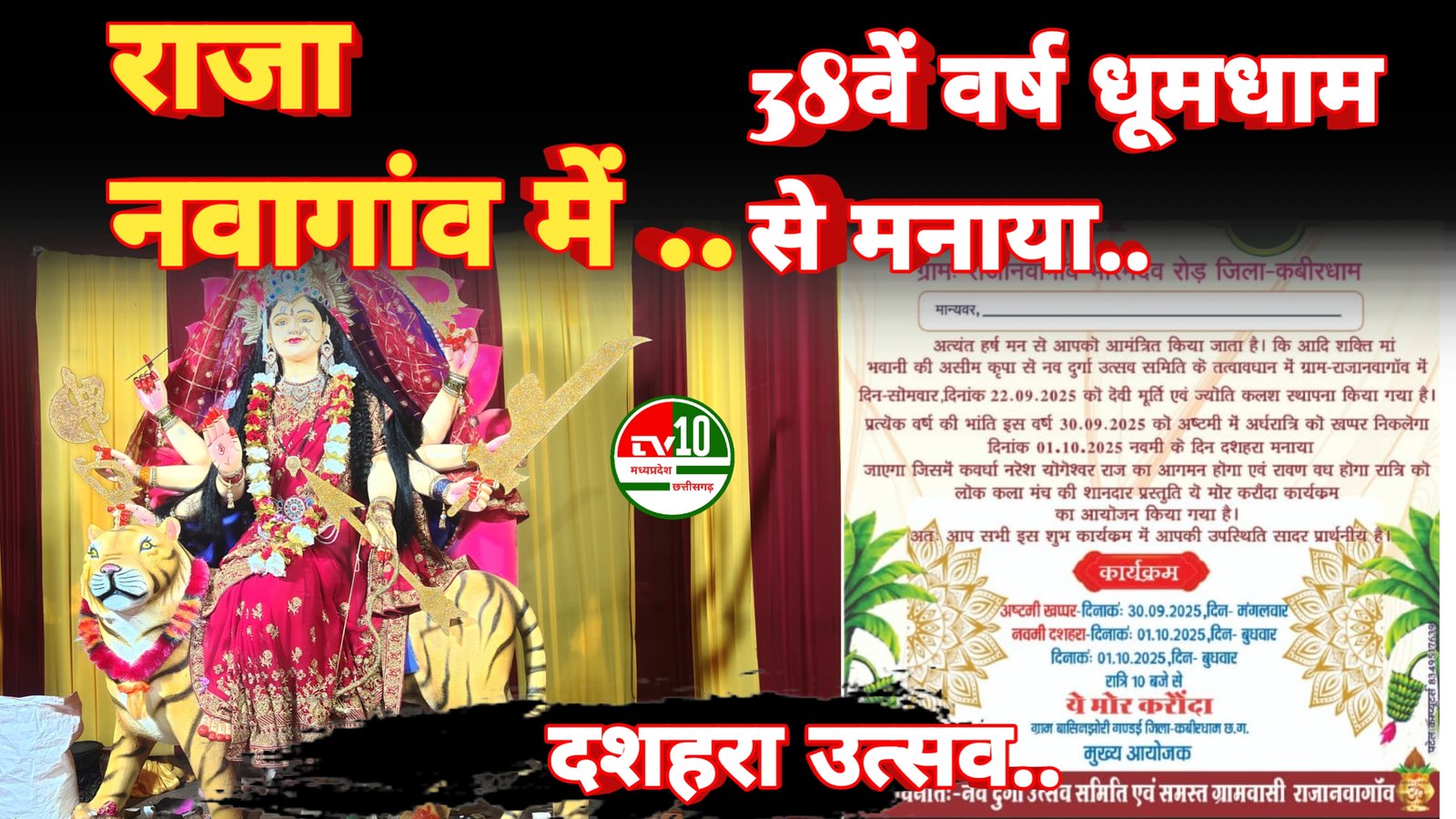 कबीरधाम:- ग्राम राजा नवागांव में इस वर्ष भी परंपरागत नव दुर्गा उत्सव समिति एवं आदर्श दुर्गा उत्सव समिति के तत्वावधान में धूमधाम से दशहरा उत्सव का आयोजन किया जा रहा है। यह आयोजन लगातार 38 वर्षों से आयोजित किया जा रहा है।