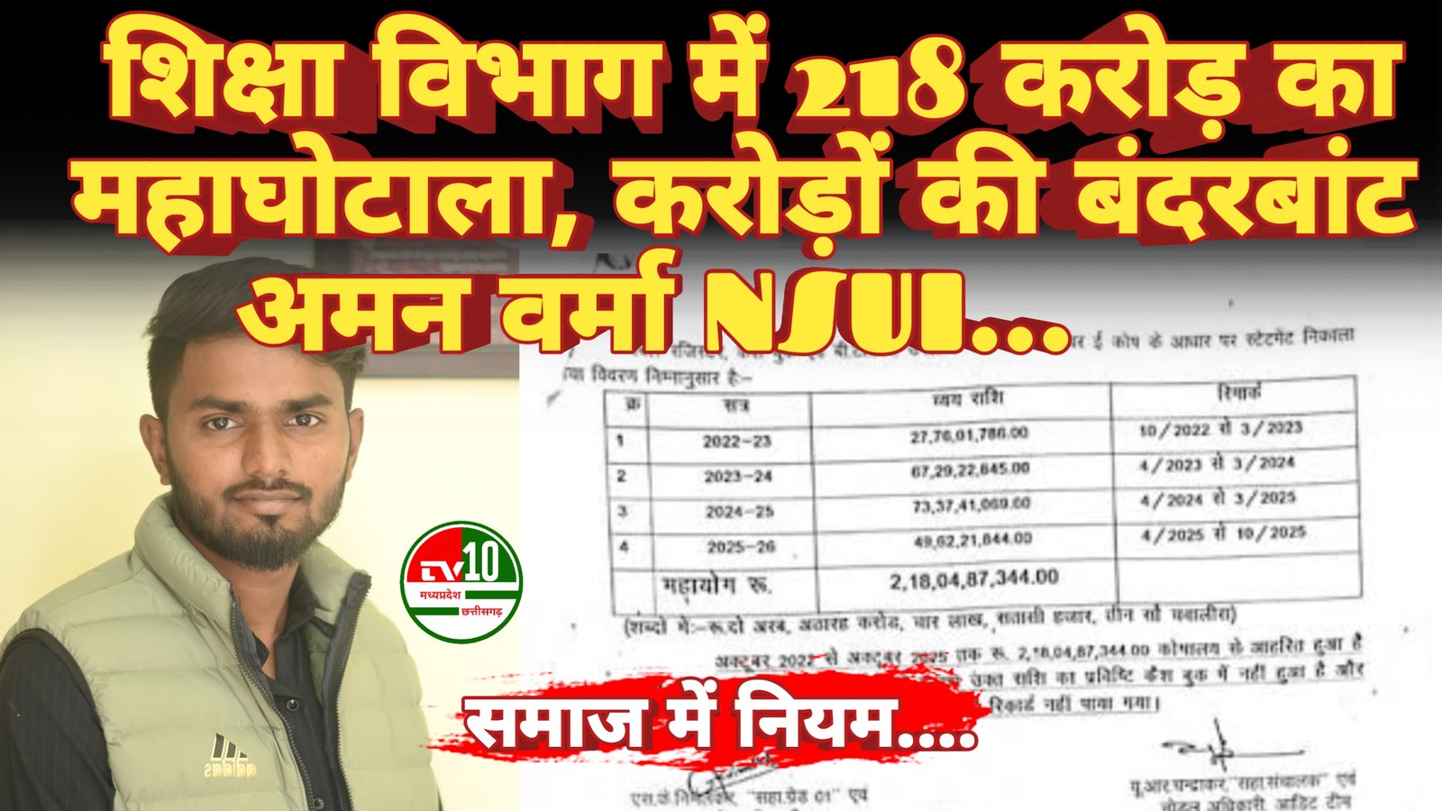 कवर्धा:-  जिले में भ्रष्टाचार लगातार नए-नए रिकॉर्ड बना रहा है। पहले 7 करोड़ रुपये के धान घोटाले ने प्रशासन की कार्यप्रणाली पर सवाल खड़े किए थे और अब शिक्षा विभाग में सामने आए 218 करोड़ रुपये के कथित महाघोटाले ने पूरे जिले को शर्मसार कर दिया है।