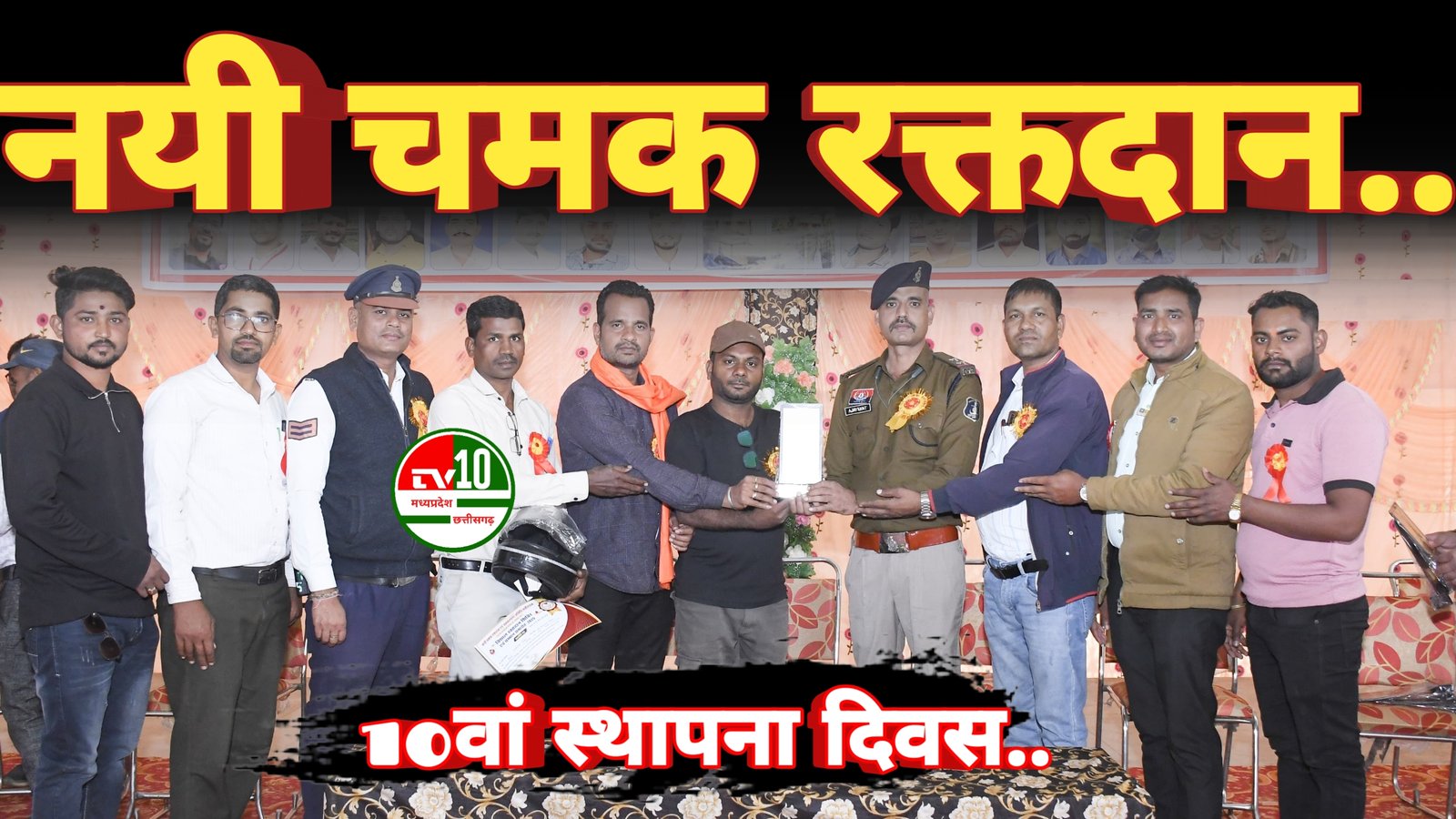 कवर्धा:- मानवता की सेवा में समर्पित नयी चमक रक्तदान एवं जनकल्याण समिति ने अपने स्थापना के 10 वर्ष पूर्ण होने के उपलक्ष्य में स्थानीय पी.जी. कॉलेज डोम में एक विशाल रक्तदान शिविर एवं सम्मान समारोह का भव्य आयोजन किया। कार्यक्रम में जिले भर से आए युवाओं ने उत्साहपूर्वक भाग लेते हुए समाजसेवा का परिचय दिया।