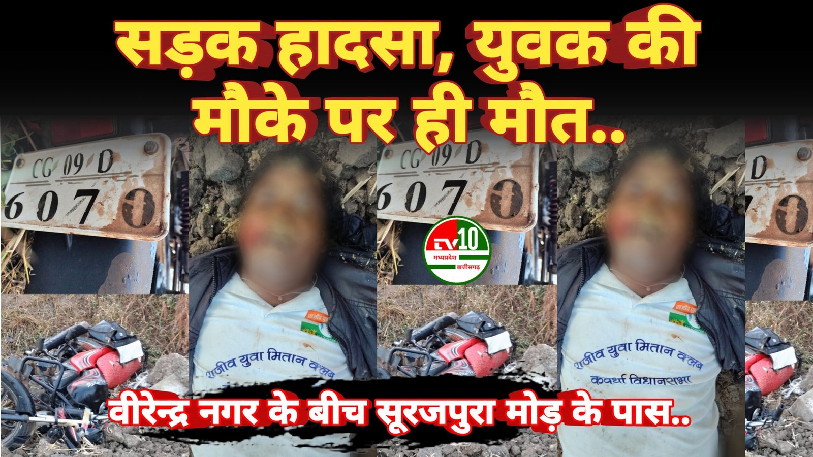 प्राप्त जानकारी के अनुसार शिवकुमार पटेल अपने खेत के लिए दवाई लेने खमरिया गया था। दवाई लेकर आधी रात वापस लौटते समय सूरजपुरा मोड़ के पास उसकी दुर्घटना हो गई। हादसा इतना गंभीर था कि युवक ने मौके पर ही दम तोड़ दिया।